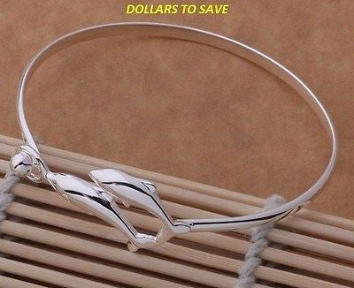925 Sterling Silver Double Dolphin Bangle Bracelet – Dollars To Save
