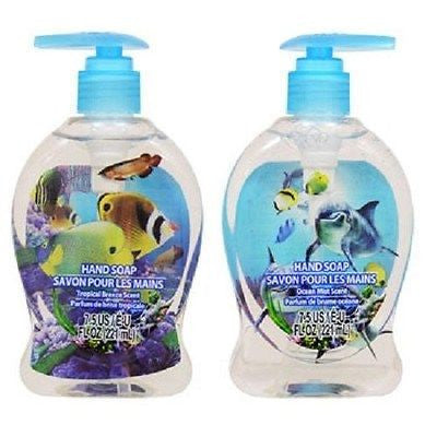 3-D aquatic sea life designs brighten up any washroom, kitchen, or bath déco! Great for home, offices, spas 7.5-oz. bottles of Aquarium Series Liquid Hand Soap with convenient pump dispensers, assorted among 4 fragrances: tropical breeze, very berry, ocean mist, and lemon splash.please @ checkout in the comment box leave the fragrance you wish to purchase. Thank you